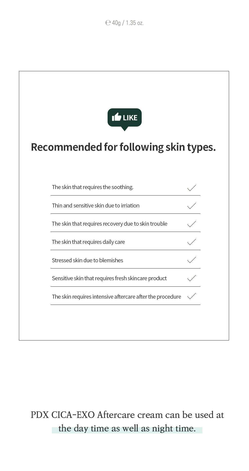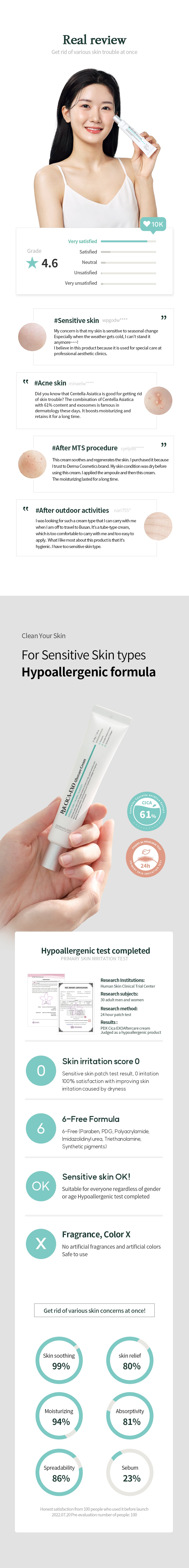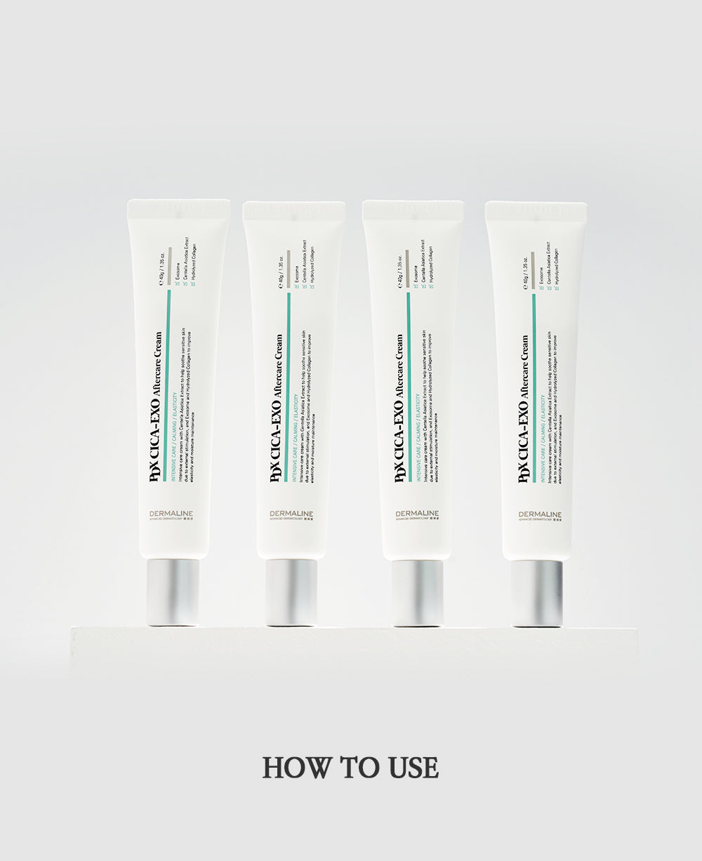 Intensive care cream with Centella Asiatica Extract to help soothe sensitive skin due to external stimulation, and Exosome and Hydrolyzed Collagen to improve elasticity and moisture maintenance.